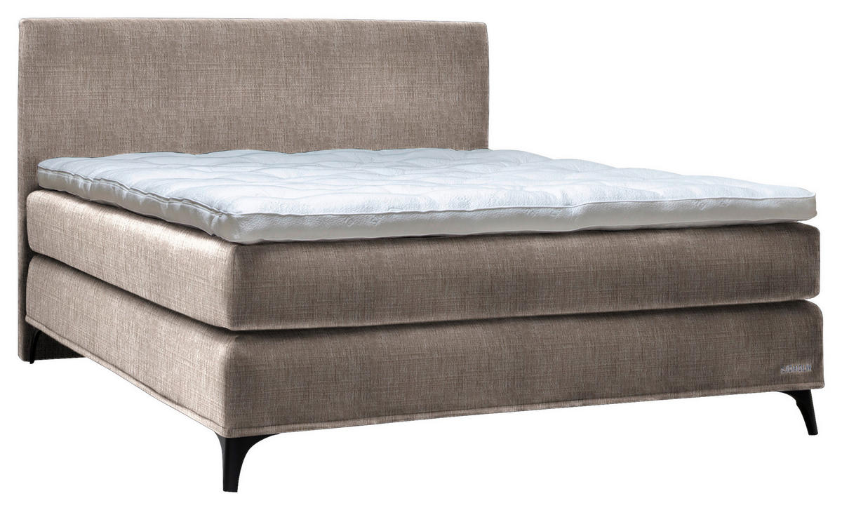 Schwarz ist ein sicherer Stand gegeben und das Design wird adäquat vervollständigt. Machen Sie jetzt den nächsten Schritt zu mehr Entspannung – mit diesem Boxspringbett (ca. 200 x 220 cm) in Hellbraun inklusive Matratze, Topper und gepolstertem Kopfteil!