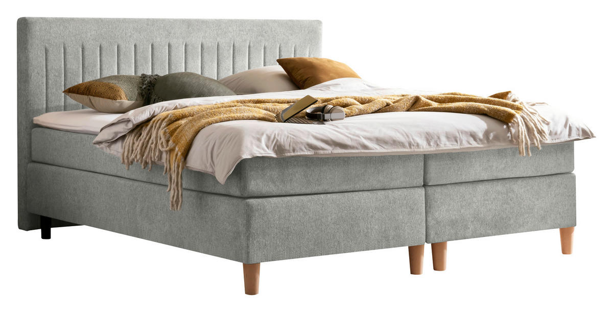 Buchefarben ist ein sicherer Stand gegeben und das Design wird stylish vervollständigt. In diesem Boxspringbett (ca. 180 x 200 cm) in Grau mit Matratze, Topper und gepolstertem Kopfteil ist Relaxen angesagt – gönnen Sie sich Ihre ganz persönliche Me-Time-Zone!