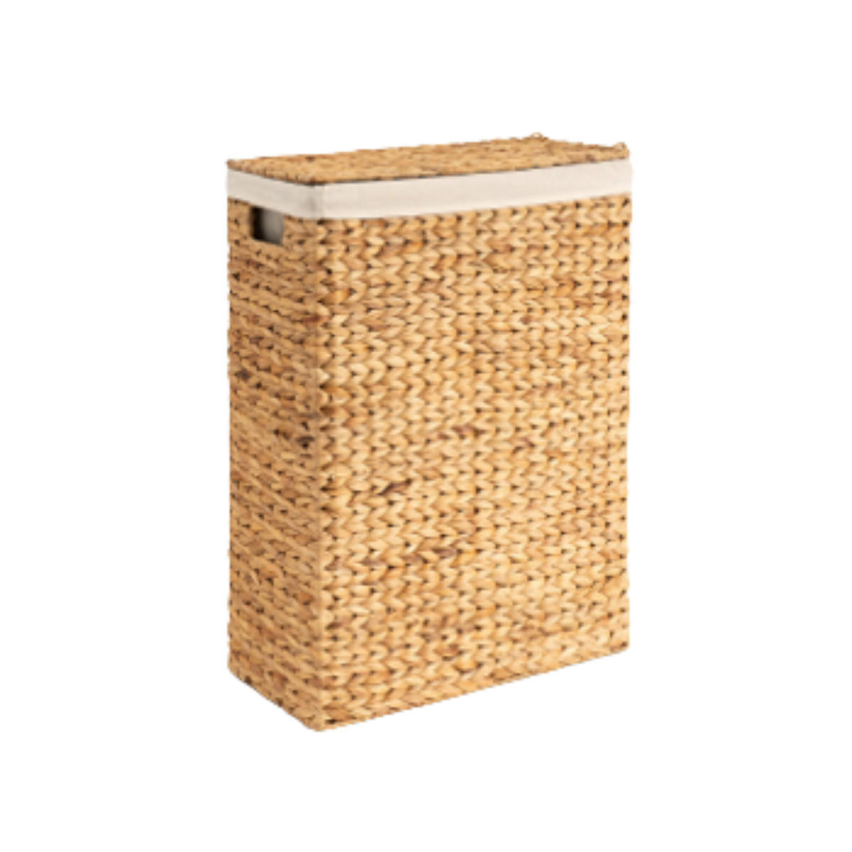 Produkteigenschaften : Schmaler Wäschekorb aus Wasserhyazinthe.2 Griffe.1 am Korb befestigter Deckel, herausnehmbarer Innensack aus 100 % Polyester.Ideal für kleine Räume.Lässt sich leicht neben einer Waschmaschine, hinter einer Tür oder zwischen zwei Möbelstücken verstauen.Produktmaße : Länge 21 cm x Höhe 60 cm x Tiefe 45 cm - Nettogewicht : 2,40 kg.Verpackungsmaße : Paket Nr.1 : Länge 65 cm x Höhe 63 cm x Tiefe 47 cm - Bruttogewicht : 2,80 kg.