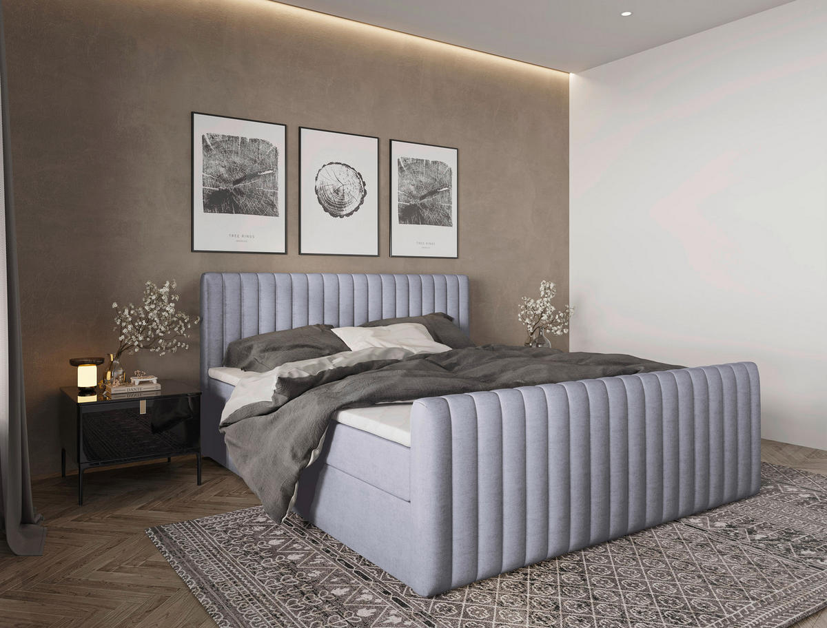 Bettkasten sorgt für Ordnung. Mehr als Schlaf: Ihr neues Boxbett (ca. 180 x 200 cm) in Grau mit Bettkasten und gepolstertem Kopfteil für ultimative Relaxqualität!