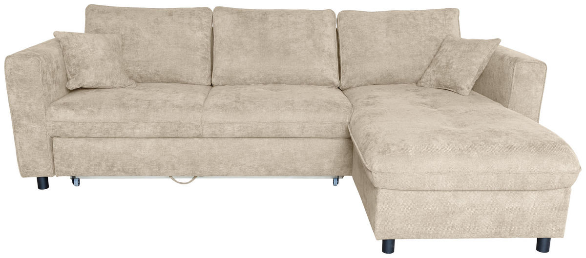 Eine Sonderportion Wohnlichkeit schenkt Ihnen dieses naturfarbene Ecksofa mit Flachgewebe-Bezug. Greifen Sie zu!