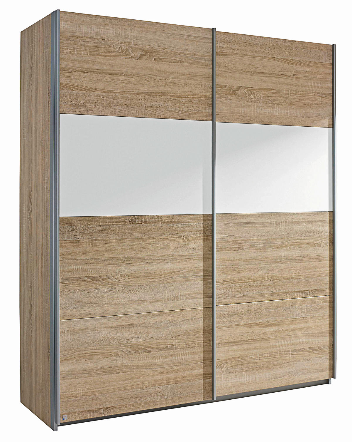 Für Sommerkleider, Winterjacken und kurze Hosen: In diesem Schwebetürenschrank von CARRYHOME fühlt sich Ihre Kleidung das ganze Jahr über wohl! Der großzügige Schrank (B x H: ca. 181 x 210 cm) bietet ausreichend Stauraum und ergänzt so Ihre Schlafzimmereinrichtung perfekt. 2 Kleiderstangen und 2 verstellbare Einlegeböden helfen beim Sortieren und Ordnunghalten. Das hochwertige Möbel ist aus stabiler Flachpressplatte gefertigt. Während der Korpus in Sonoma-Eichefarben klassisch anmutet, wertet die Kombination aus Weiß die Front modern auf. Silberfarbene Griffleisten sorgen für eine leichte Handhabung der beiden Schwebetüren. Geben Sie Ihrer Kleidung in diesem Schwebetürenschrank ein stilvolles neues Zuhause!