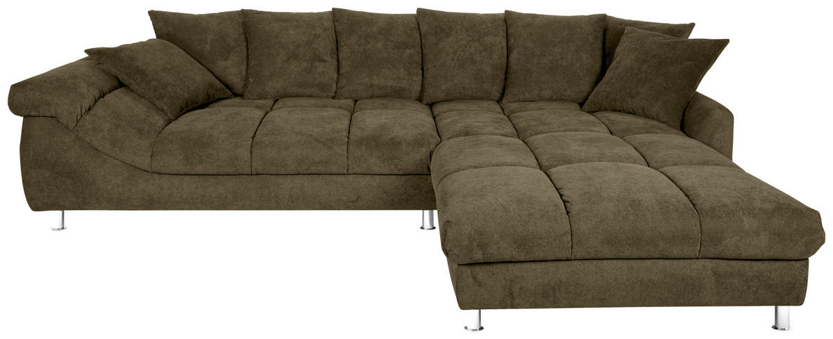 Ihr grünes Ecksofa mit Webstoff-Bezug verführt dazu, behaglich die verdiente Me-Time zu genießen!