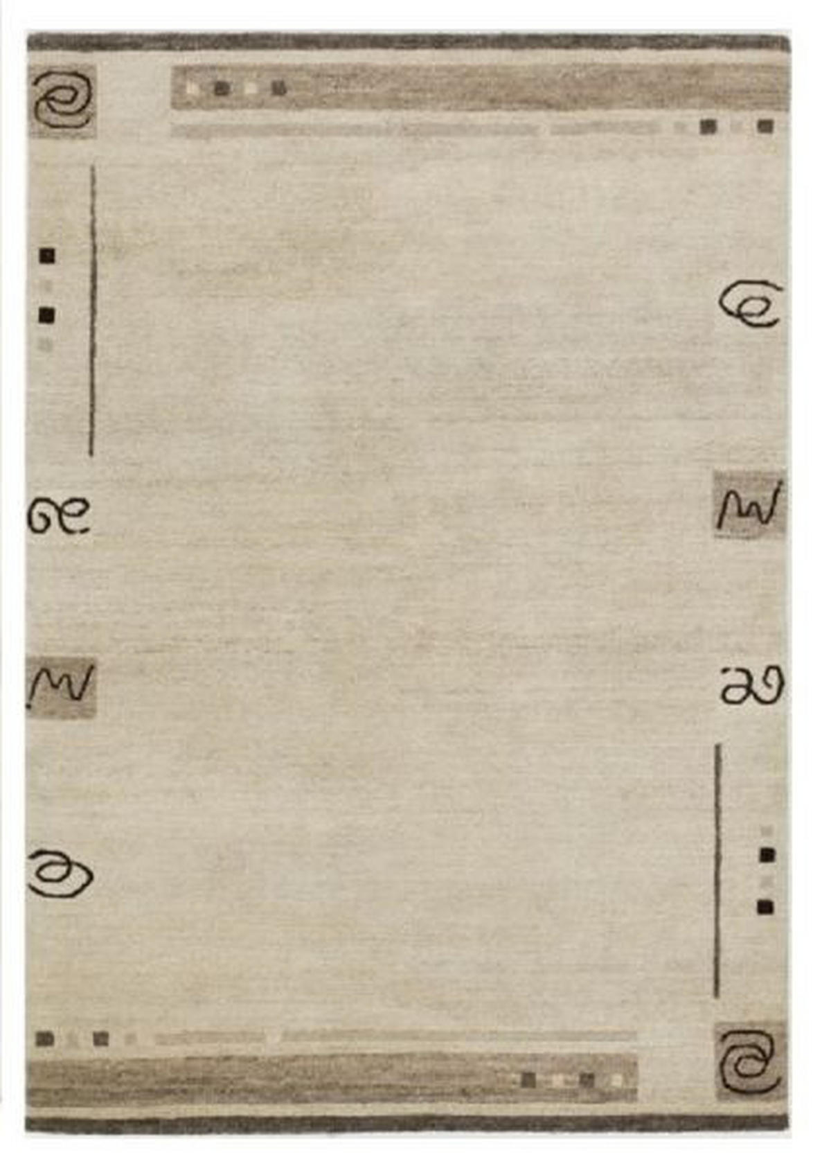 Dieser handgeknüpfte Orientteppich wertet Ihren Wohnbereich geschmackvoll auf. Die dezente Farbgebung in Beige harmoniert auf der Fläche von ca. 70 x 140 cm (B x L) mit der Bordüre aus modern-abstrakten Ornamenten in Braun. Robuste Fasern aus Schurwolle sowie Hanf machen den Teppich hochwertig und strapazierfähig. Das Gewebe ist auch für Räume mit Fußbodenheizung optimal geeignet. Dieser handgeknüpfte Orientteppich in Beige und Braun vereint klassische Qualität mit zeitgemäßem Design!