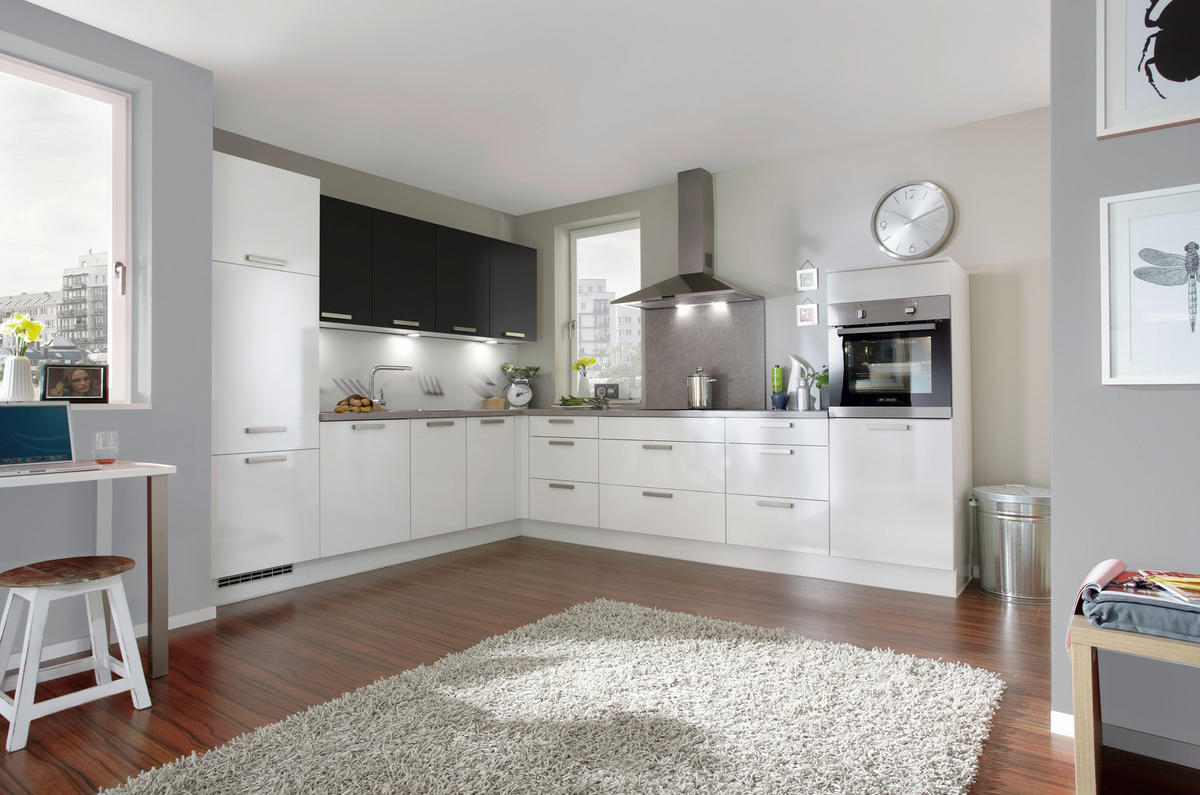 Einbauküche (matt) in Weiß und Schwarz - kreative Kochzentrale
