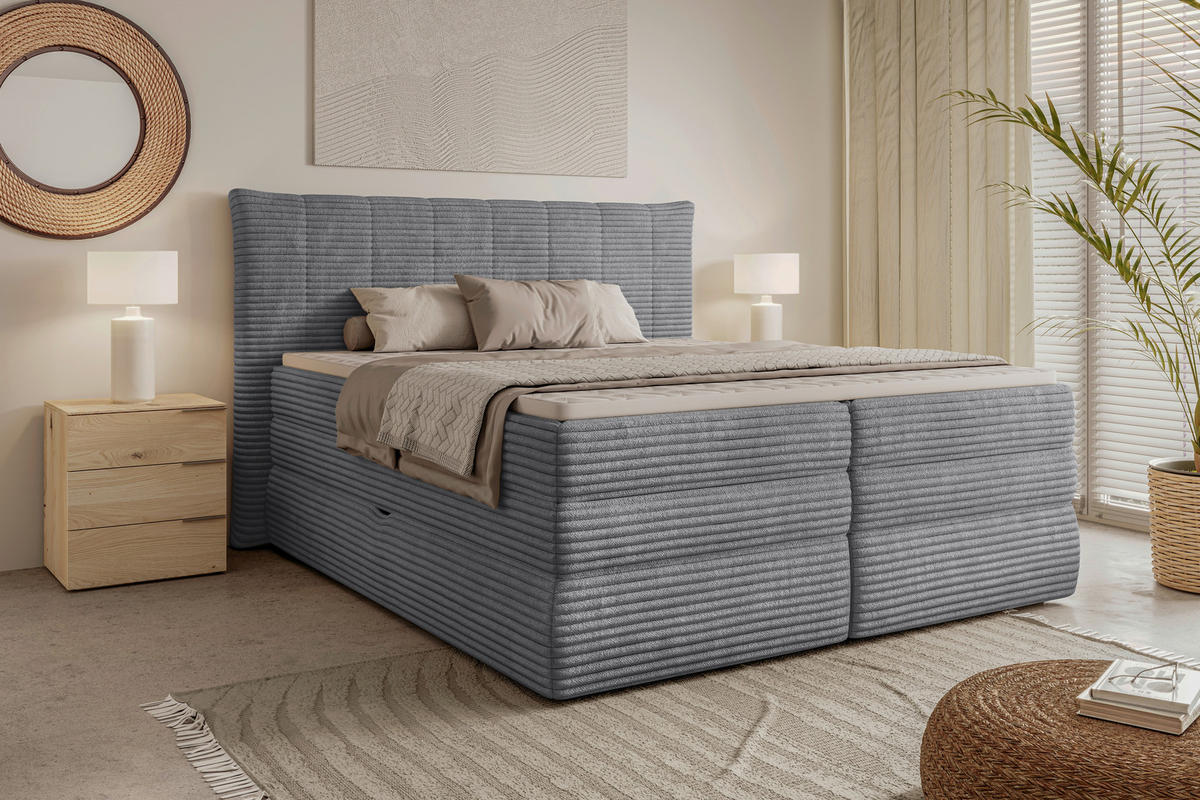 Dunkelgrau inklusive Bettkasten bringt einen Hauch Eleganz in Ihre Ruheoase.