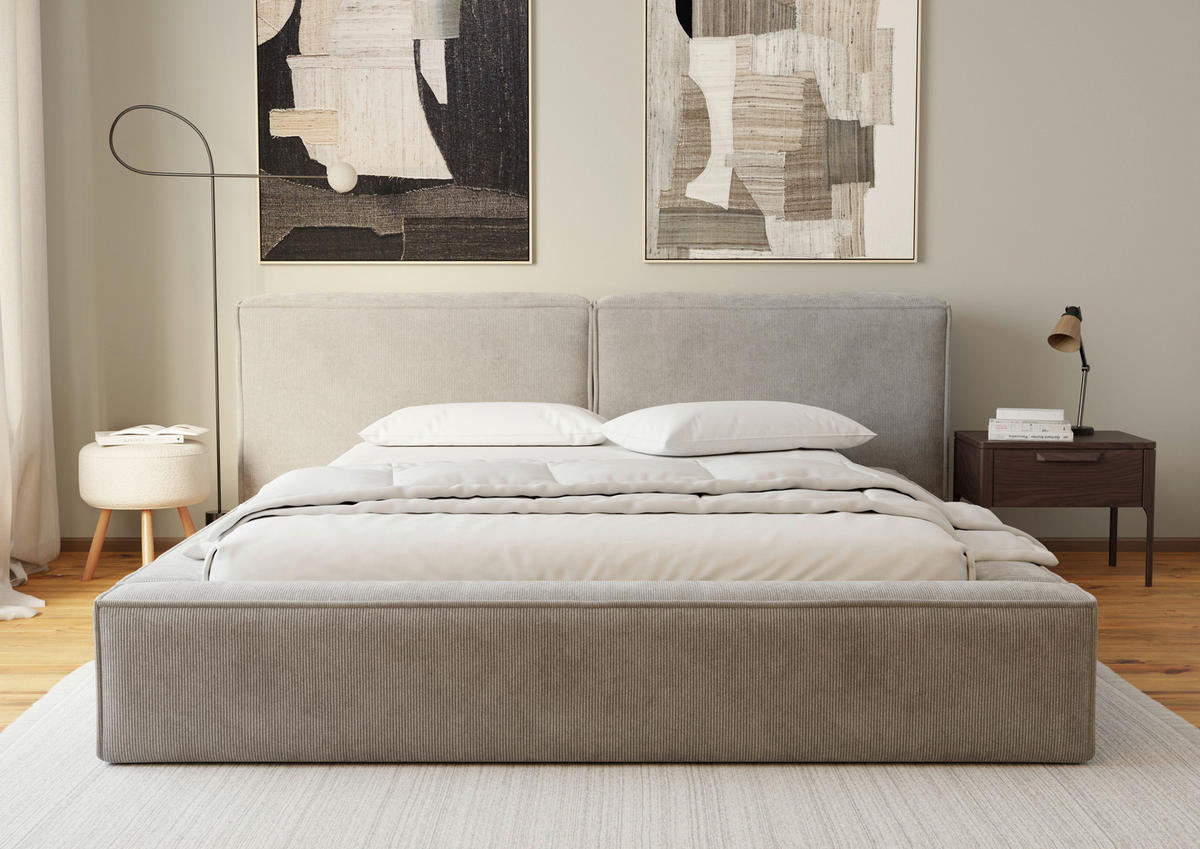 - Besonderheiten: Bettkasten, gepolstertes Kopfteil, in verschiedenen Größen erhältlich