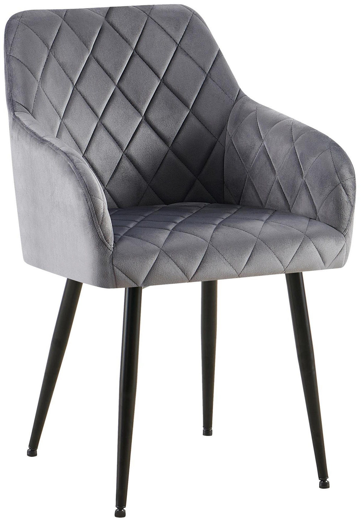 Der Stuhl verfügt über eine großzügig gepolsterte Sitzfläche mit rautenförmigem Steppmuster. Das Polster ermöglicht komfortables Sitzen auch über einen längeren Zeitraum hinaus. Ergänzt wird der Sitzkomfort durch die Rückenlehne und die Armlehnen.