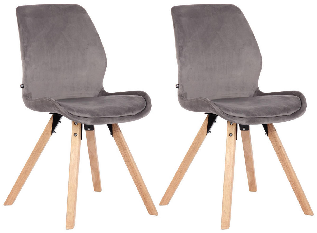 STUHL 2er Set Samt grau - Eukalyptusholzfarben/Grau, Holz/Textil (49/87.5/58cm) - CLP