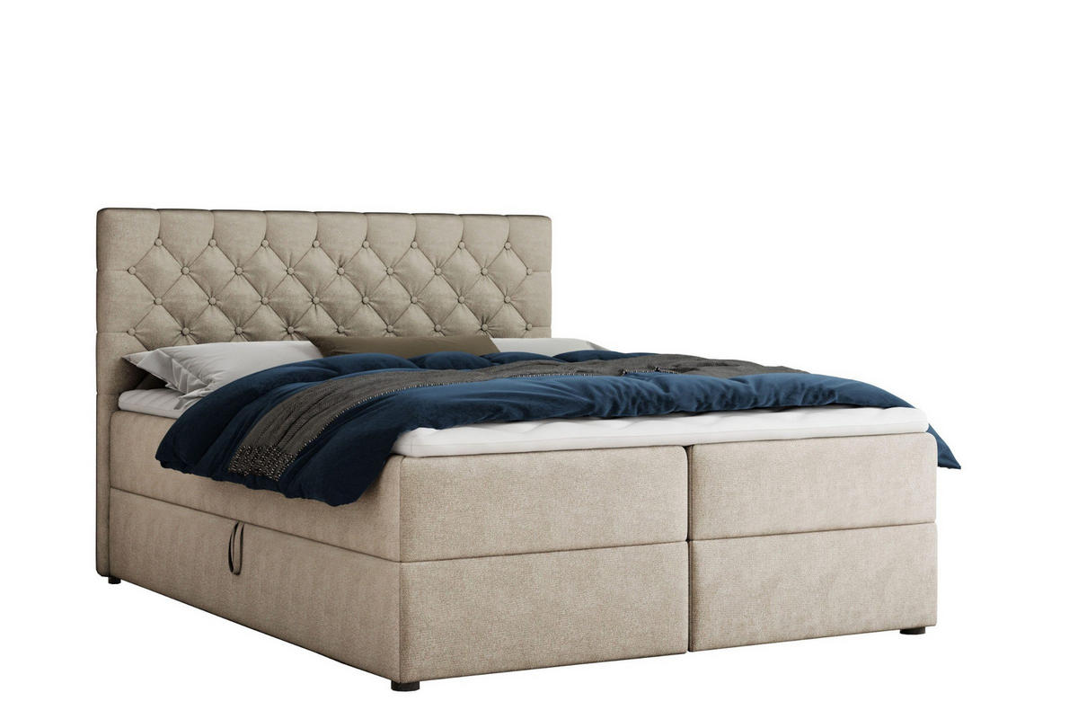 Deine Möbel 24 BOXBETT MIRAMI 120/200 Beige mit Taschen-Federkernmatratzen 7 Zonen H4