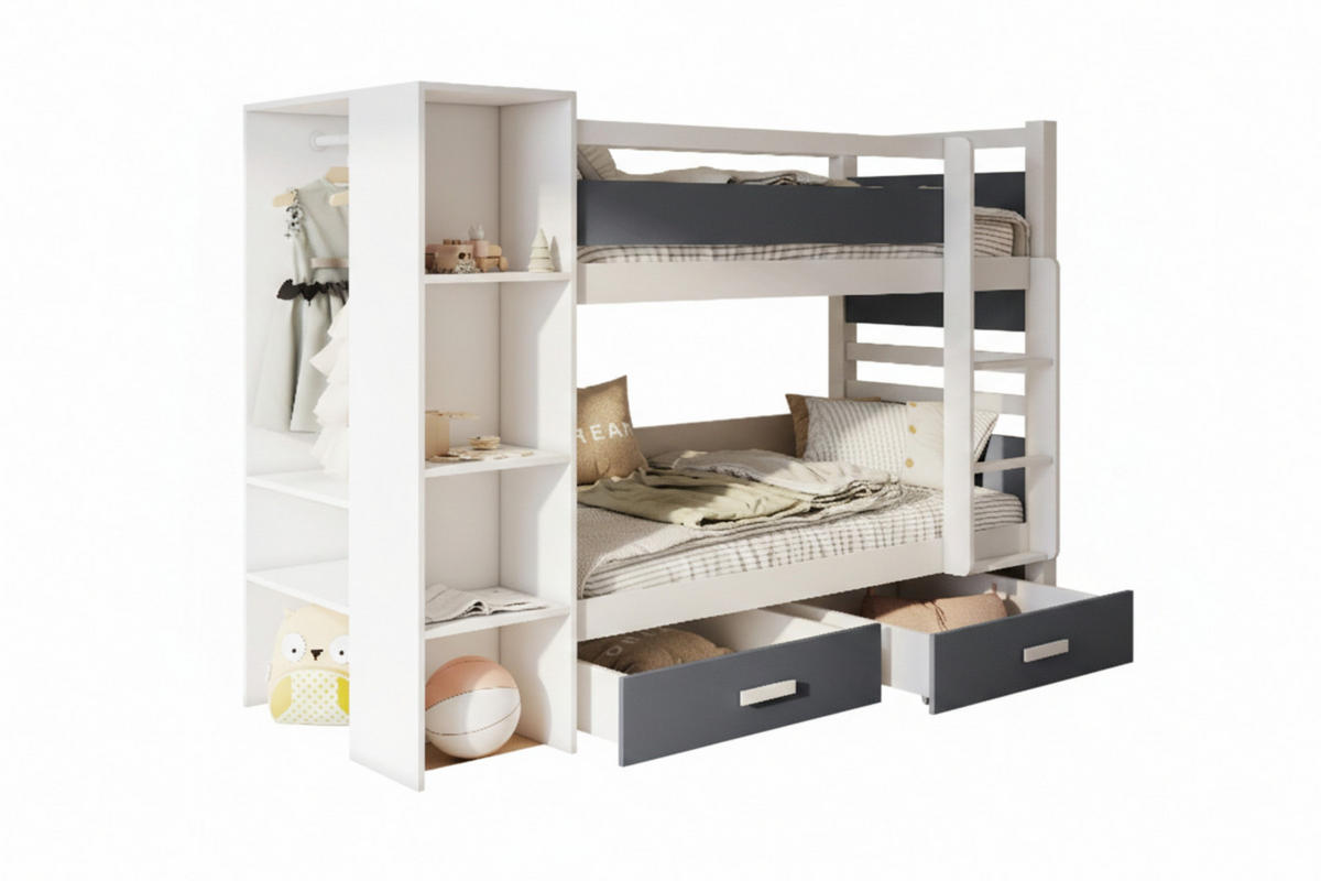 Deine Möbel 24 ETAGENBETT AGNES 90/200 Weiß/Graphit rechts