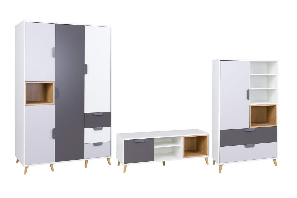 Weiß, Graphitfarben, Grau, EichefarbenBreite/Höhe/Tiefe: 321/190/40 cm