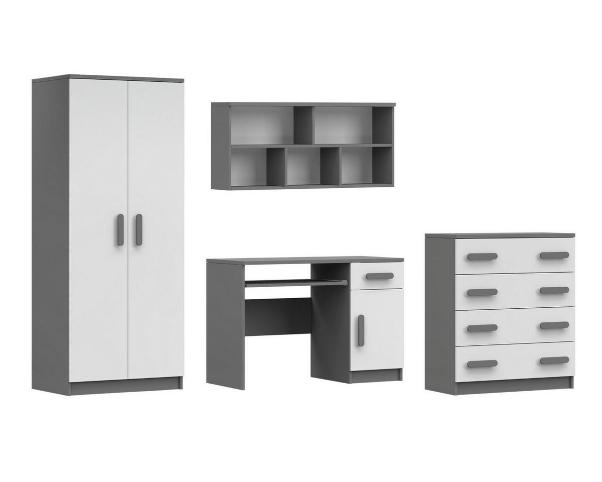 Deine Möbel 24 KINDERZIMMER-SET INGE III 4-teilig Weiß+Grau/Grau