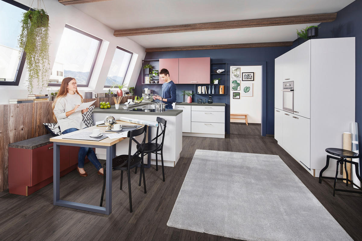 - Besonderheiten: in den Filialen individuell planbar, individuelle Inneneinteilung, in den Filialen verschiedene Griffe erhältlich, in den Filialen verschiedene Arbeitsplatten erhältlich, verschiedene Arbeitshöhen möglich