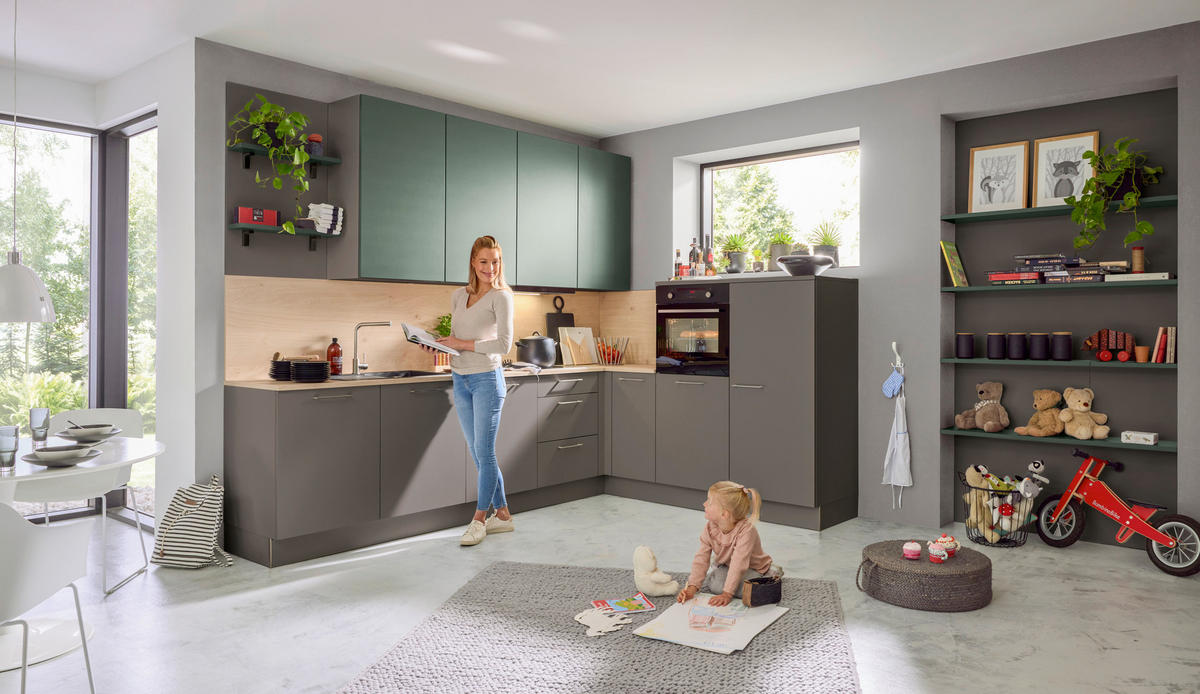 - Besonderheiten: in den Filialen individuell planbar, individuelle Inneneinteilung, in den Filialen verschiedene Griffe erhältlich, in den Filialen verschiedene Arbeitsplatten erhältlich, verschiedene Arbeitshöhen möglich