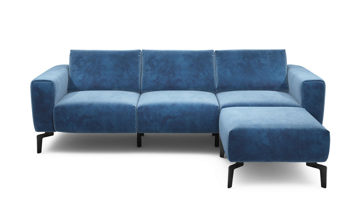 SENSOO 3-Sitzer-Sofa mit Samt-Bezug in Blau mit Hocker