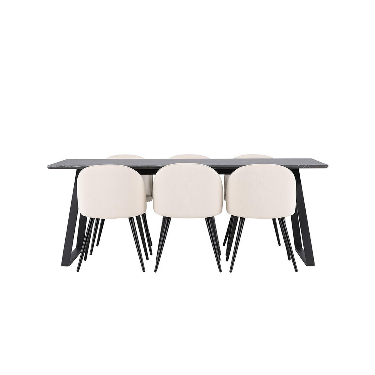Das Esstischset Malaga, Esstisch 90x200cm dunkelgrau und 6 Skagen-Stühle samtbeige, ist ein Esstischset, dass sowohl Stil als auch Funktionalität in Ihr Zuhause bringt.