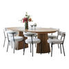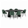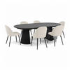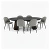 Die sechs dazugehörigen Stühle haben eine leichte und moderne Form mit schwarzem Metallgestell und bequemer Polsterung, die für guten Sitzkomfort sorgt – sowohl im Alltag als auch bei langen Dinnerpartys. Sowohl Ästhetik als auch Funktionalität wurden bis ins kleinste Detail berücksichtigt.
