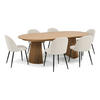 Esstischset Tokyo inkl. Esstisch 2 zusätzliche Platten Ø120x120-160-200cm schwarz und 6 Stühle Bouclé weiß. Tischhöhe 75 cm. Tisch ohne Zusatzplatte 120x120 cm. Tisch mit 1 Zusatzplatte 120x160cm. Tisch mit 2 Zusatzplatten 120x200cm. Stuhl: T 50 cm x H 73 cm x B 47 cm. Sitzhöhe 50 cm. Sitztiefe 49 cm.