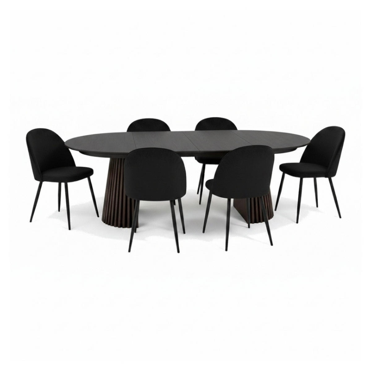 Die sechs Stühle sind mit schwarzem Samt aus 100 % Polyester bezogen, der sich weich anfühlt und einen Hauch von Luxus verleiht.