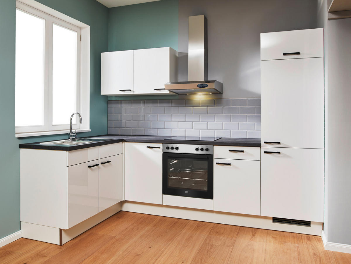 Inkludierte Elektrogeräte: Dunstabzugshaube, Einbauherd, Kühlschrank mit Gefrierfach, Glaskeramikkochfeld