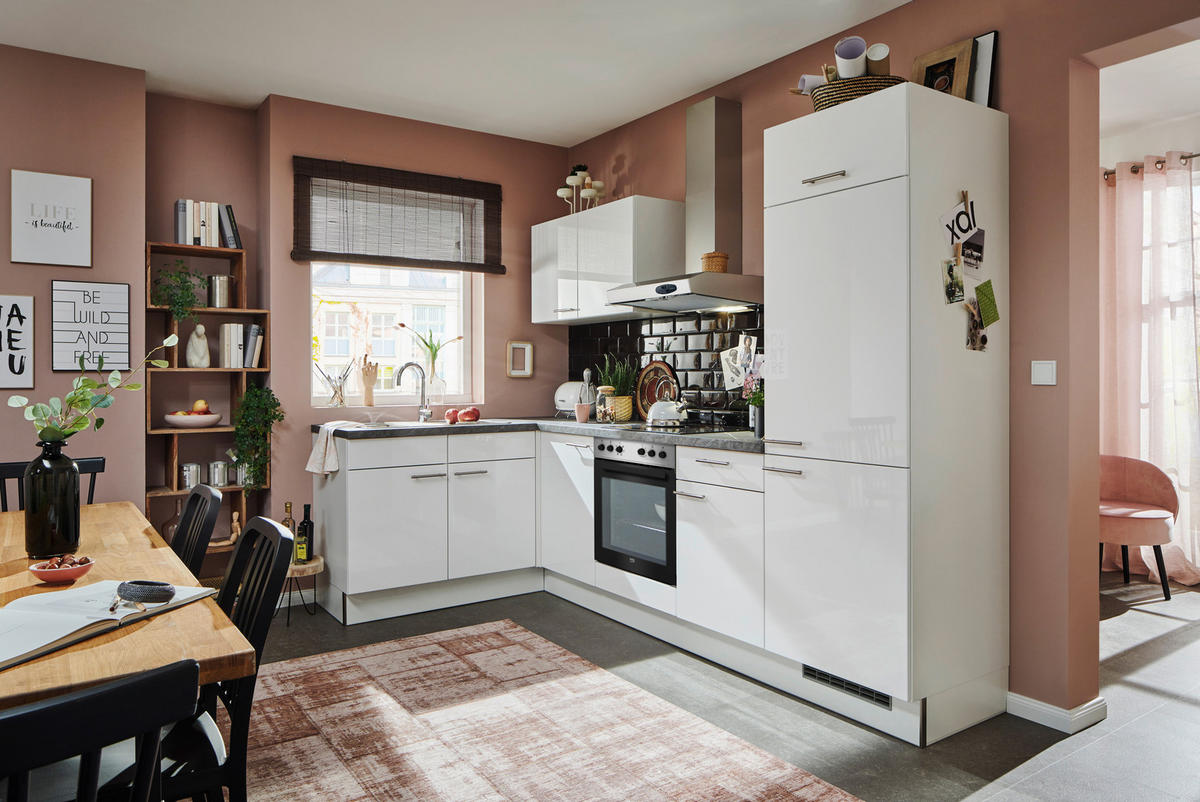 Inkludierte Elektrogeräte: Dunstabzugshaube, Einbauherd, Kühlschrank mit Gefrierfach, Glaskeramikkochfeld
