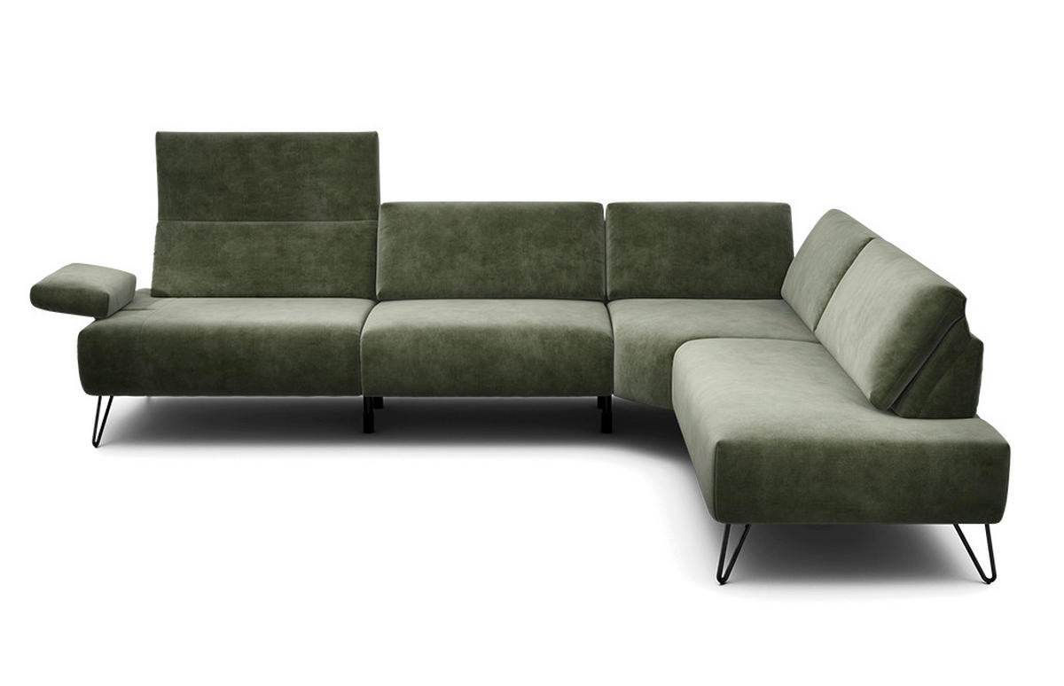 Großes SENSOO Ecksofa mit Samt-Bezug in Waldgrün: individuell entspannen