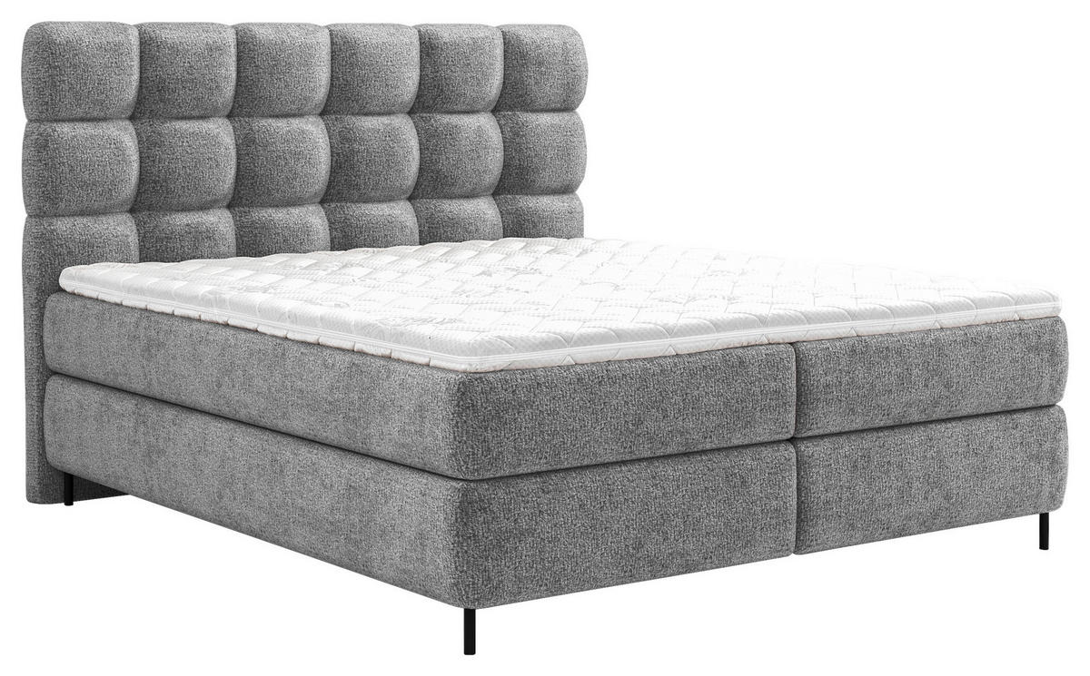 Schwarz schaffen Bodenfreiheit und perfektionieren stimmig das Design. Stellen Sie mit diesem Boxspringbett (ca. 160 x 200 cm) in Anthrazit inklusive Matratzen, Topper und gepolstertem Kopfteil die Weichen auf Behaglichkeit!