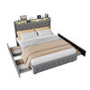 - Kopfteil mit Ablage und Ladefunktion:Das funktionale Kopfteil verfügt über integrierte Ablageflächen sowie USB- und Type-C-Anschlüsse, sodass Geräte bequem direkt am Bett geladen werden können