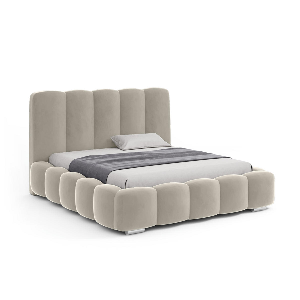 Ein spektakuläres Kopfteil verleiht dem Bett ein elegantes Design.