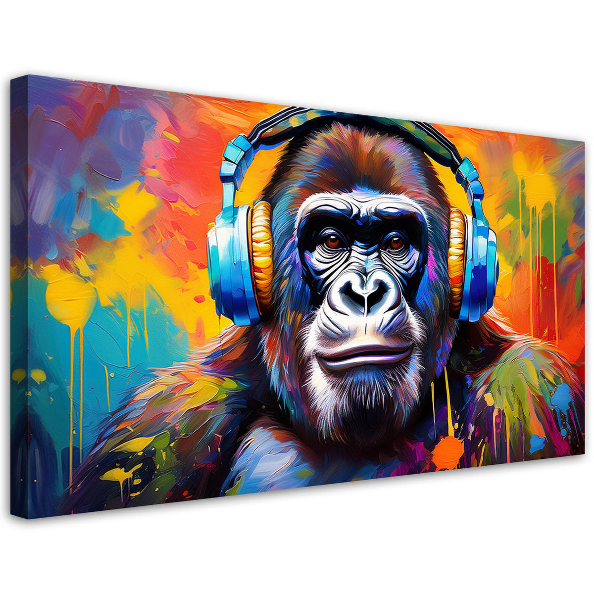 Feeby LEINWANDBILD Bunter Affe mit Kopfhörern 120x60cm