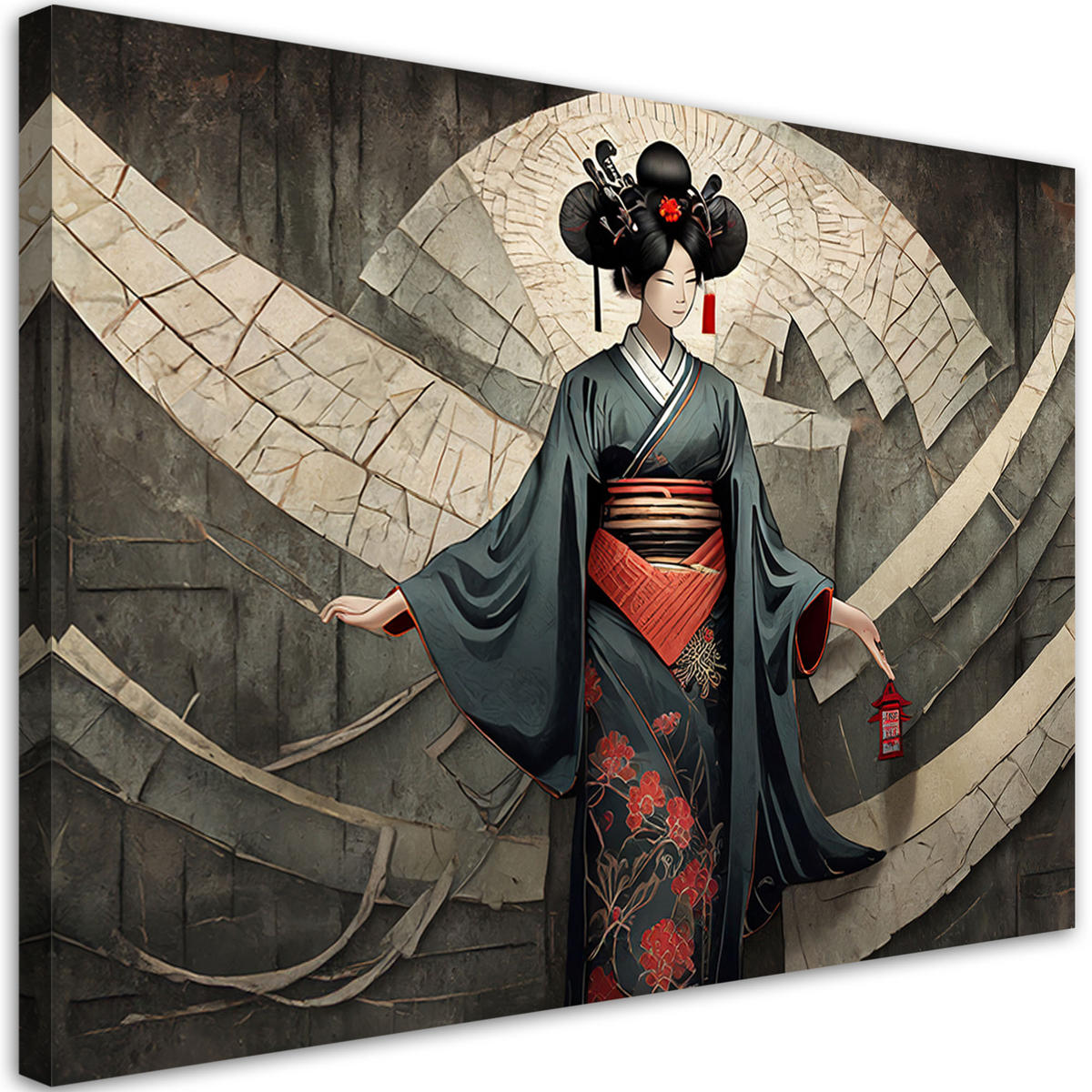 LEINWANDBILD Geisha 120x80cm - Grau, Textil (120/80cm) - FeebyFeeby