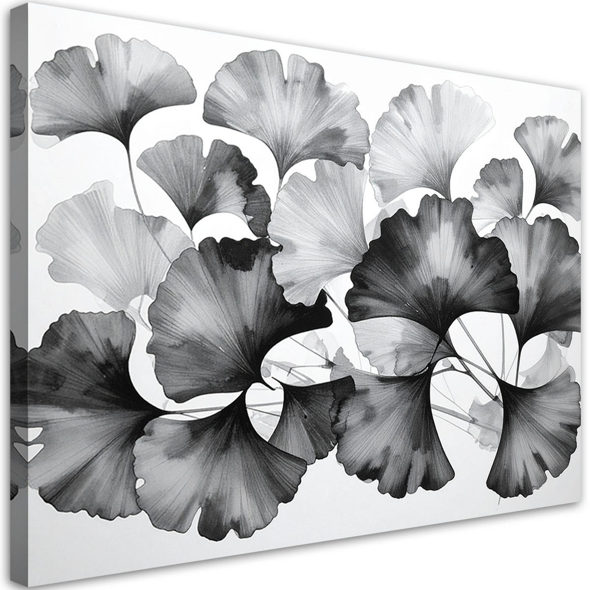 Feeby LEINWANDBILD Ginkgo Schwarz-weiße Blätter 100x70cm