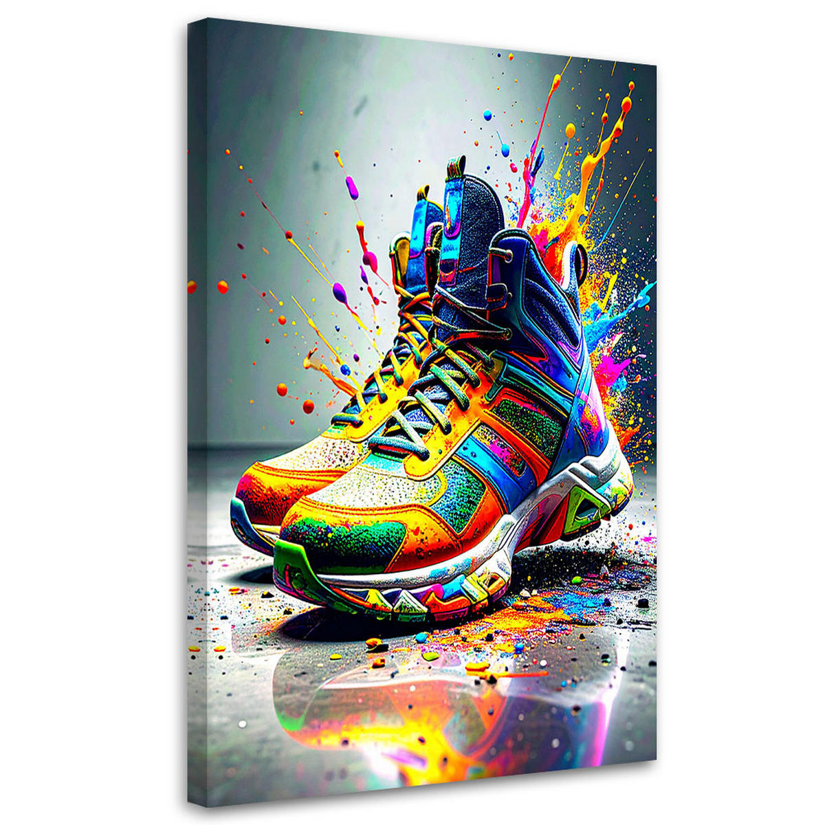 LEINWANDBILD Graffiti Bunte Schuhe Street Art 80x120cm - Multicolor, Textil (80/120cm) - FeebyFeeby