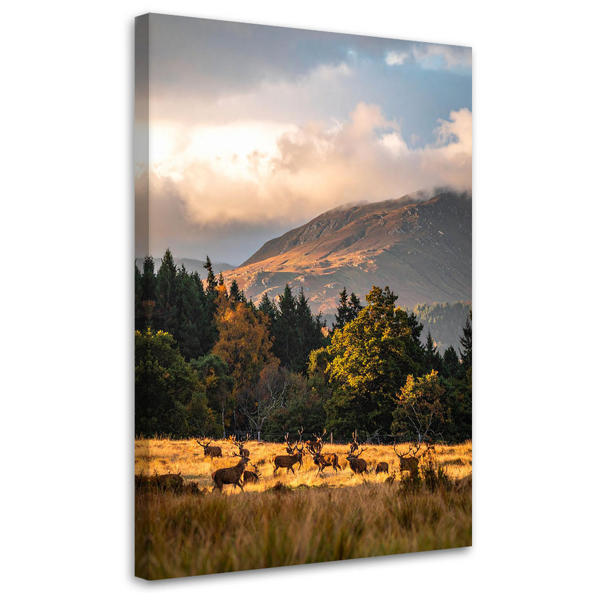 Feeby LEINWANDBILD Landschaft Blick Hirsche auf der Brunft 80x120cm