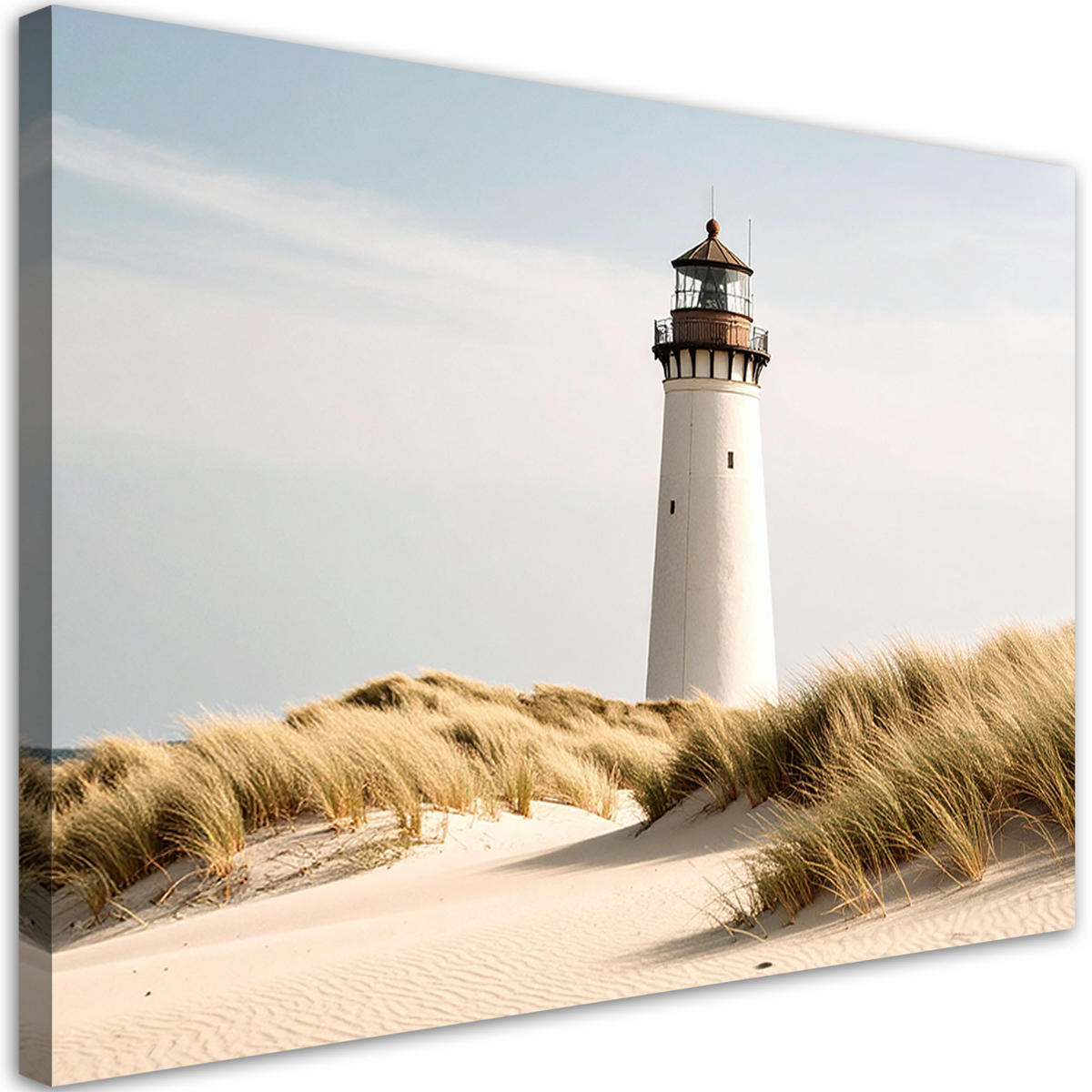 LEINWANDBILD Leuchtturm Meer Pflanzen Dünen 120x80cm - Beige, Textil (120/80cm) - Feeby