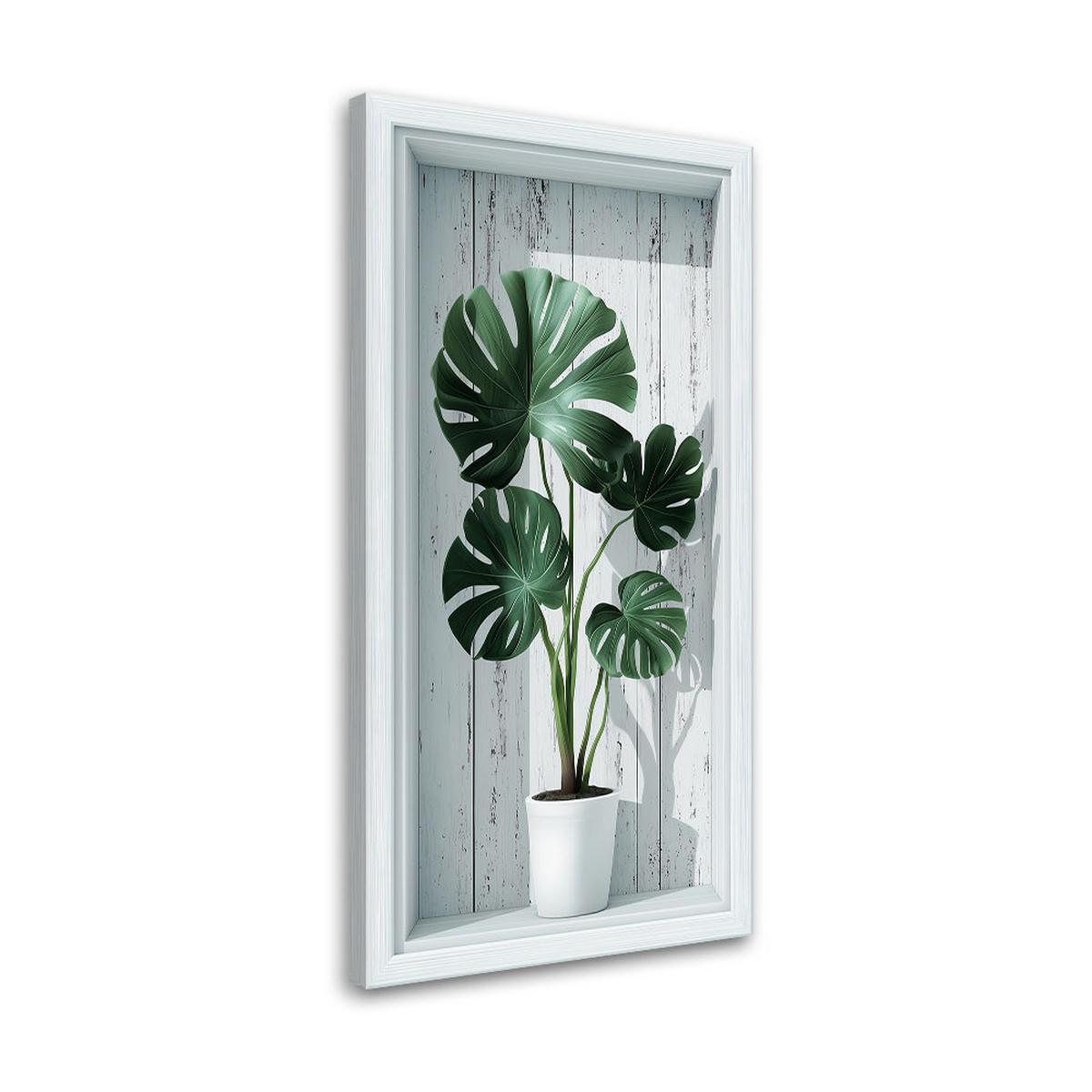 LEINWANDBILD Monstera-Blätter in einer 3D-Vertiefung 60x120cm - Weiß, Textil (60/120cm) - FeebyFeeby