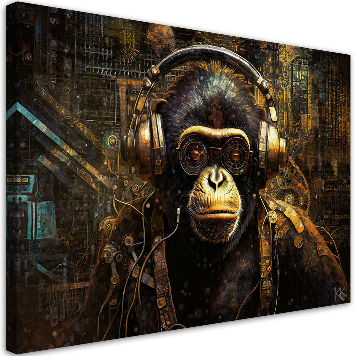 Feeby LEINWANDBILD Schimpanse mit Kopfhörern 90x60cm