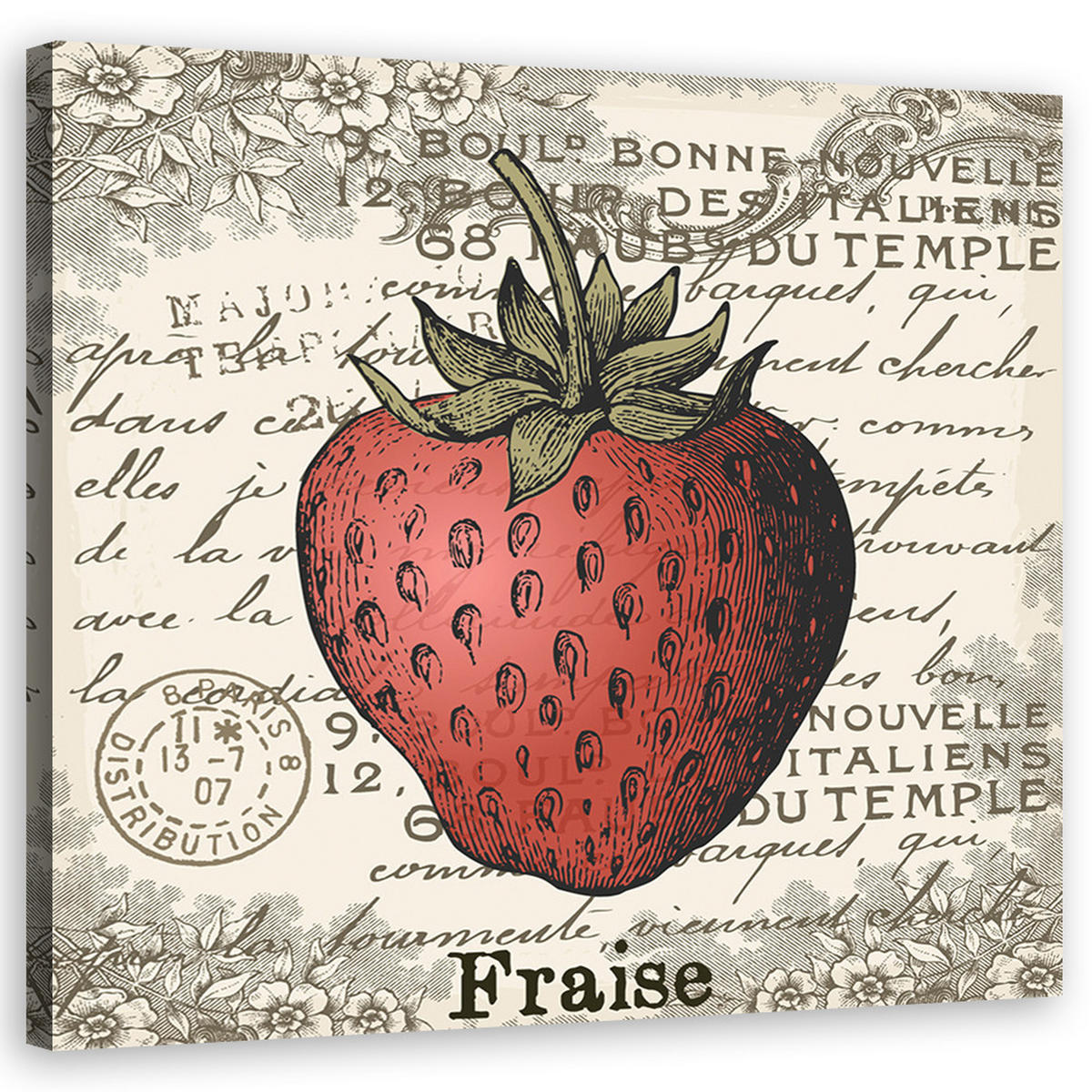 WANDBILD erdbeer vintage - Rot, Textil (40/40cm) - FeebyFeeby