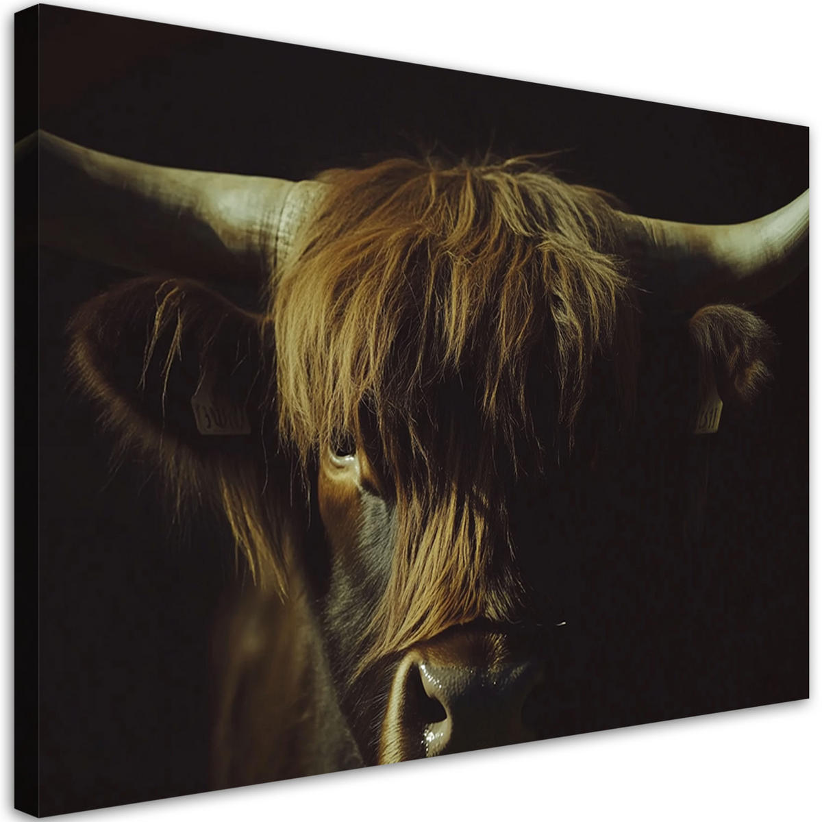 WANDBILD schottisches kuhporträt in sepia - Schwarz, Textil (60/40cm) - FeebyFeeby