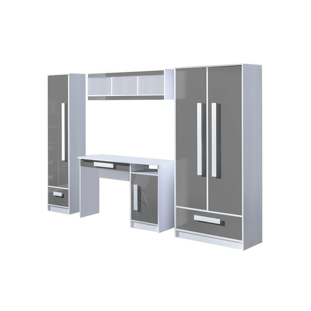 Feldmann-Wohnen JUGENDZIMMER-SET Guliver Weiß Matt / Grau Hochglanz / Griffe Weiß 4-teilig