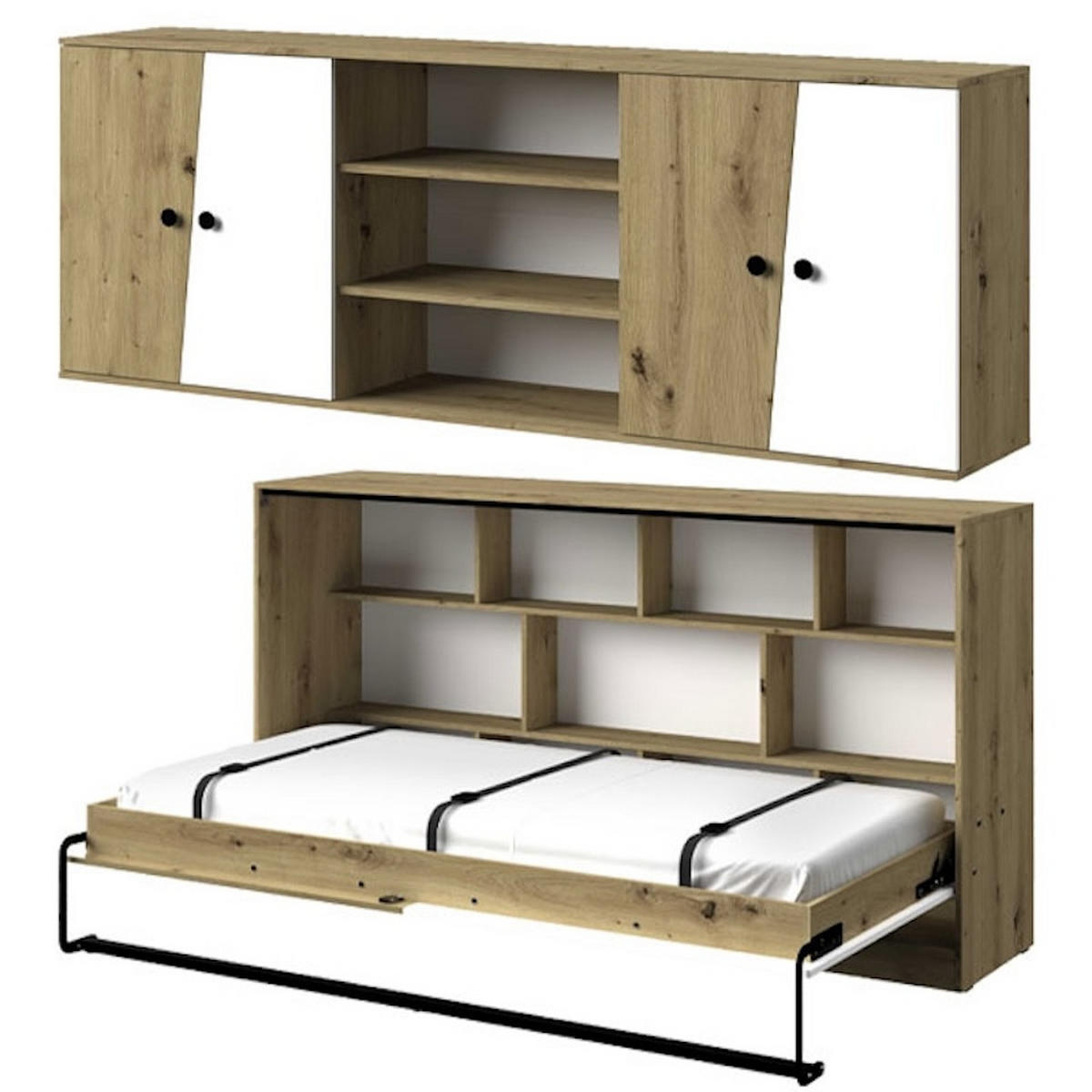 - Set bestehend aus: 1x Schrankbett mit Lattenrahmen, 1x Hängeschrank