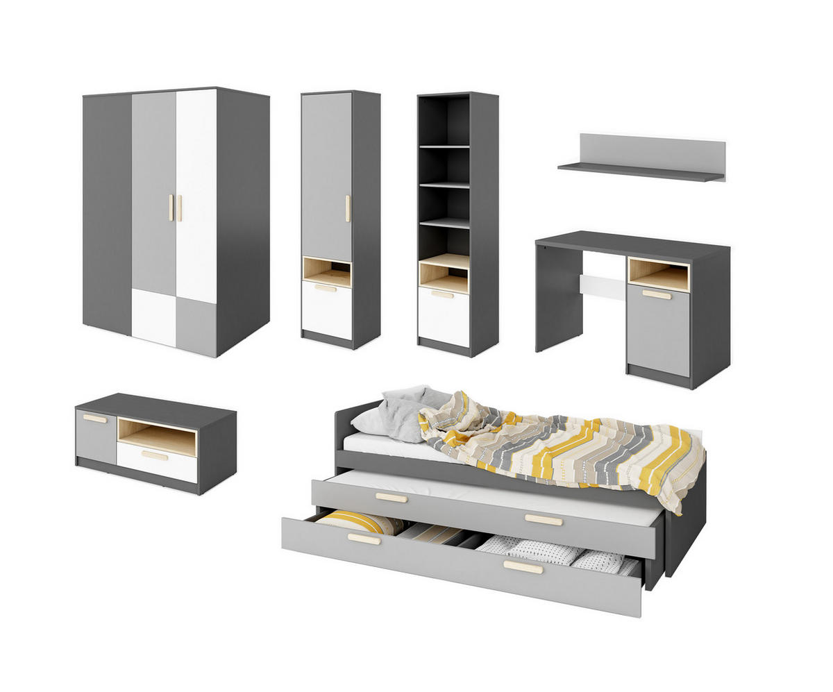 Feldmann-Wohnen JUGENDZIMMER-SET Pok graphit / grau / weiß / Buche Ibsen 7-teilig
