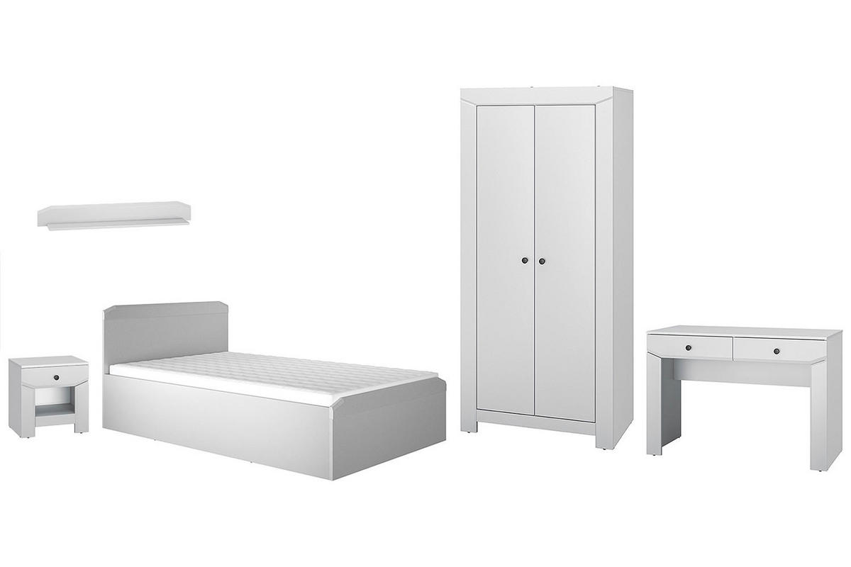 - Set bestehend aus: 1x Kleiderschrank, 1x Bett mit Lattenrost, 1x Nachtkonsole, 1x Wandboard, 1x Schreibtisch