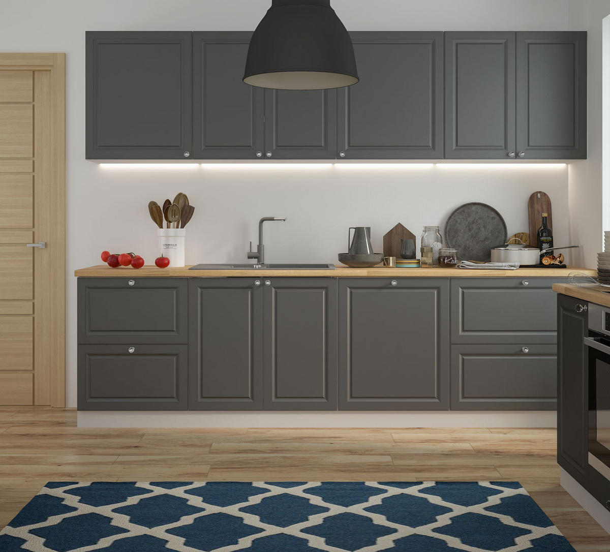 - Nicht im Lieferumfang enthalten: Spüle, Beleuchtung, Arbeitsplatte, Rahmen, Elektrogeräte, Einbaugeräte und Dekoration geliefert