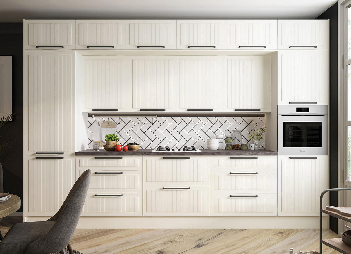 - Fronten mit dekorativen Leistenoptik und hochwertig matt lackiert