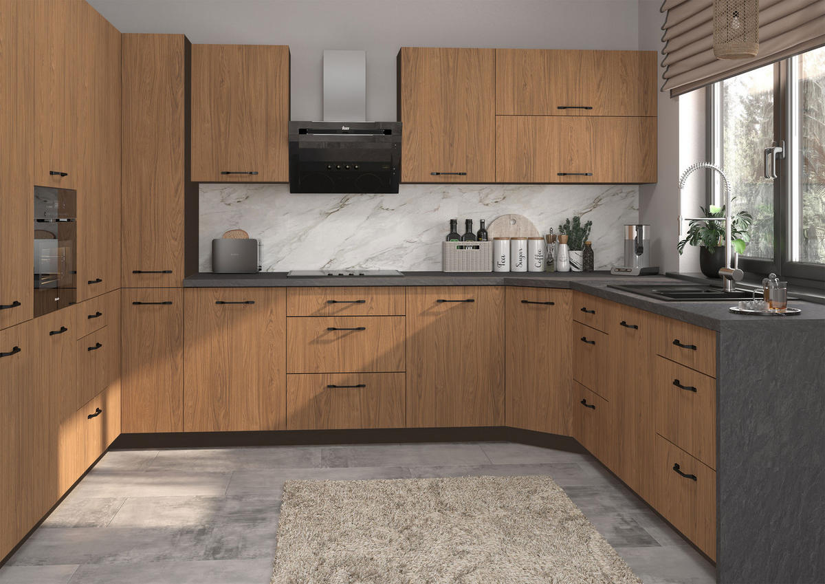 Feldmann-Wohnen KÜCHENZEILE Casella 15-teilig Lava / Casella Eiche Natur braun
