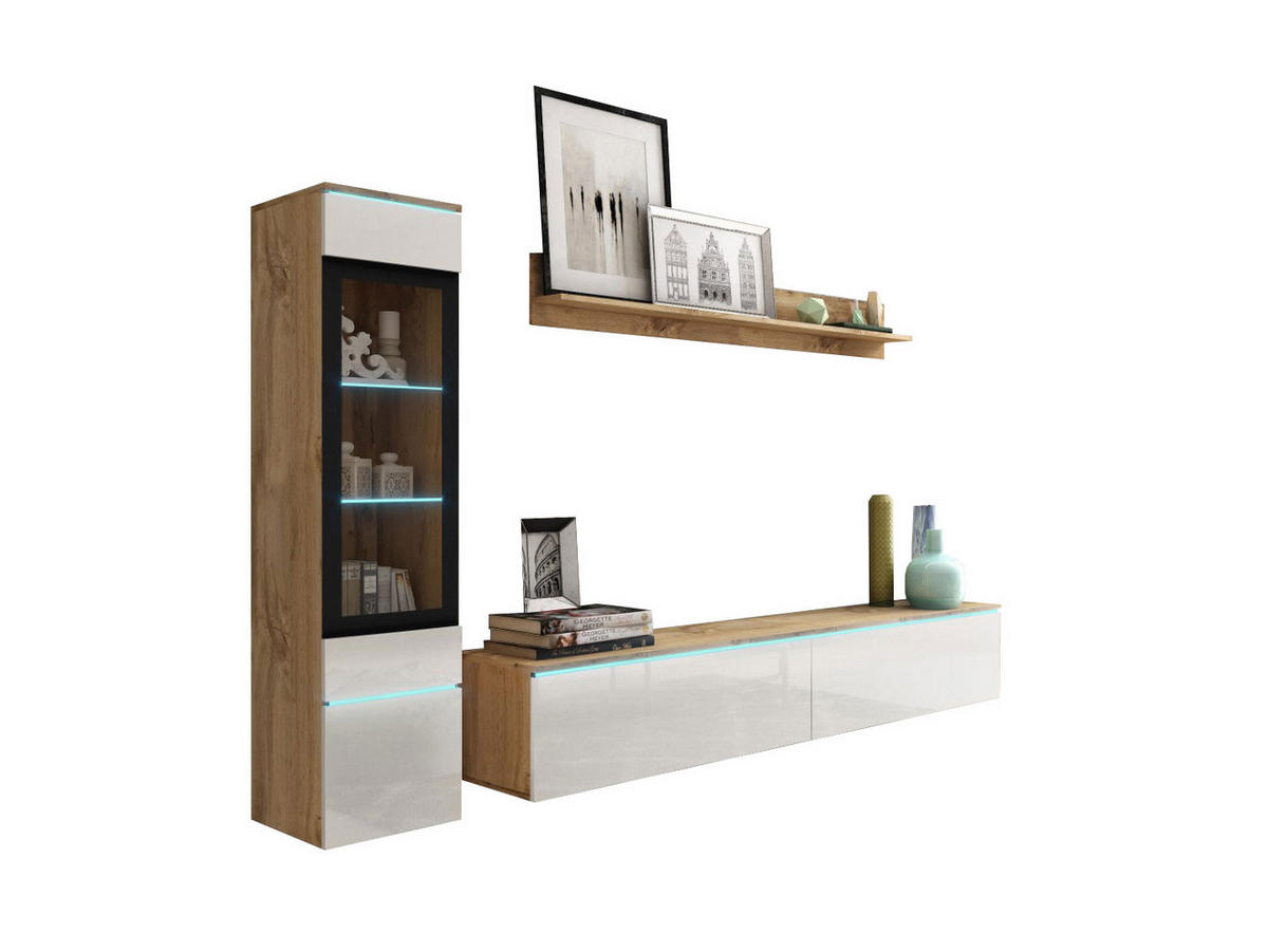 Feldmann-Wohnen WOHNWAND Vera Eiche Wotan / weiß Hochglanz 3-teilig