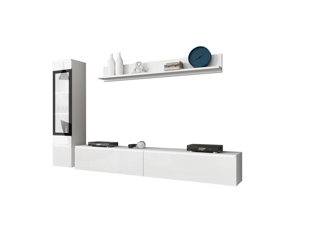 Feldmann-Wohnen WOHNWAND Vera weiß / weiß Hochglanz lackiert 3-teilig