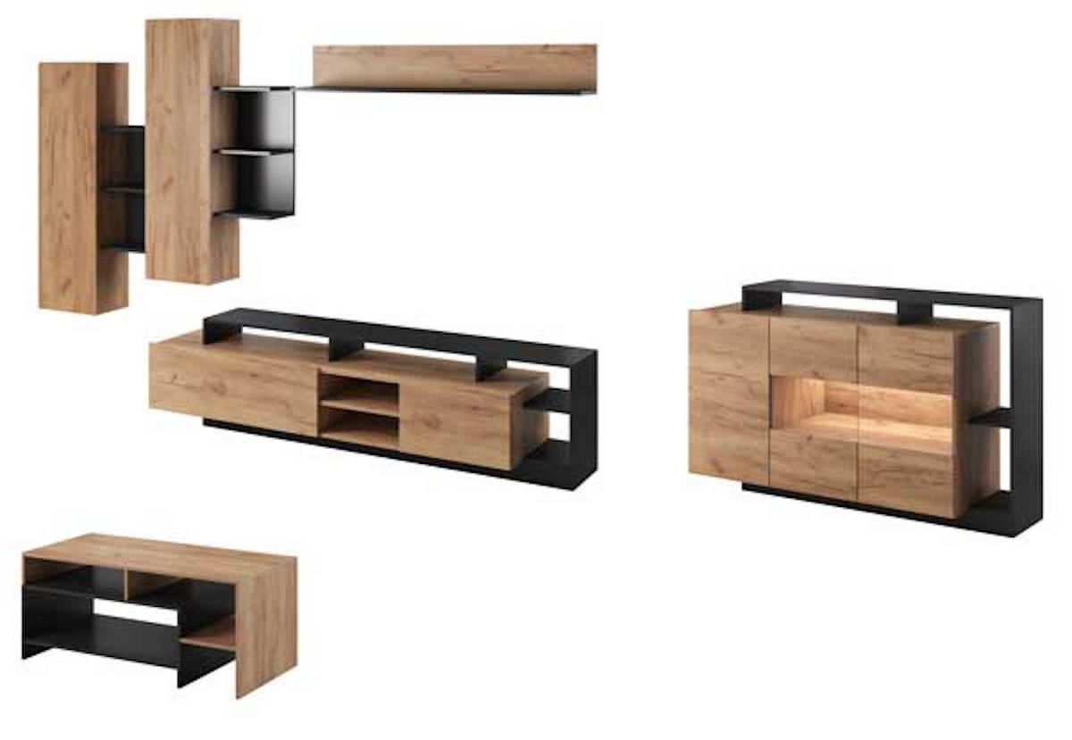 Feldmann-Wohnen WOHNZIMMER-SET Alva Craft Gold Oak anthrazit 6-teilig